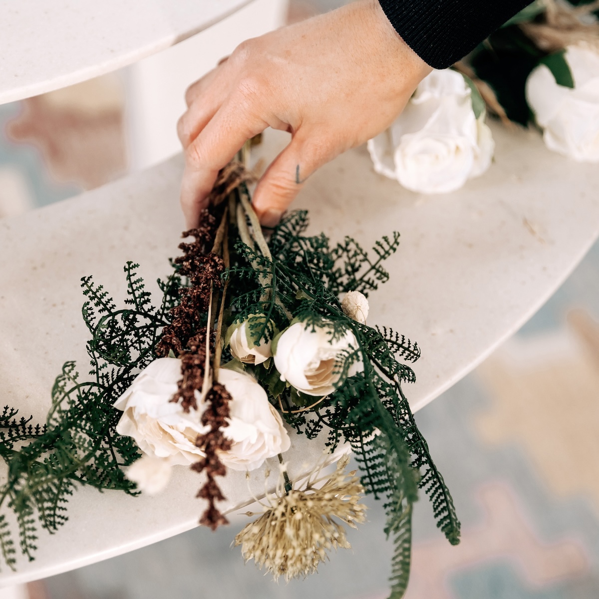 Med Indie får du ”tre bord i ett” som gör att du kan välja utseende efter behov. Enbart toppskivan, med ett hyllplan i framkant eller med två, som tillsammans bildar en cirkel runtom. Hyllplanen blir en given plats för anhöriga att placera handbuketterna på.